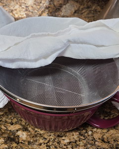 The simplicity of labneh lies in its traditional method. All you need is plain yogurt or kefir, cheesecloth, a strainer, an